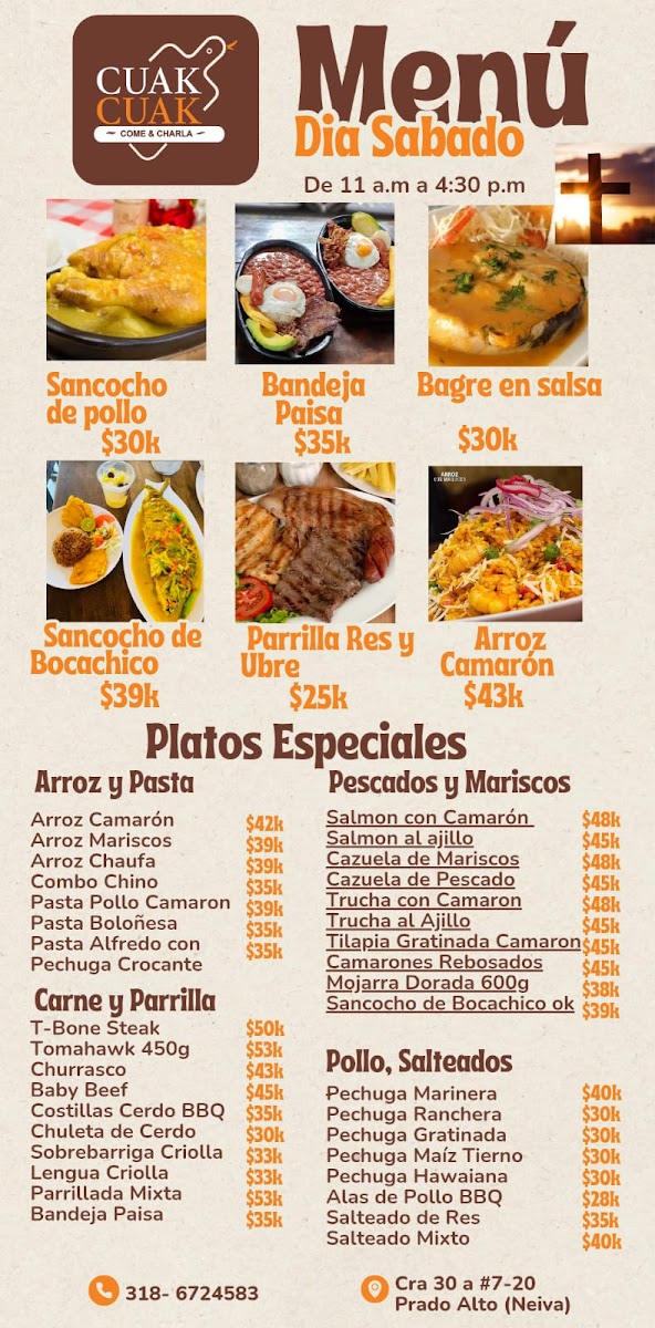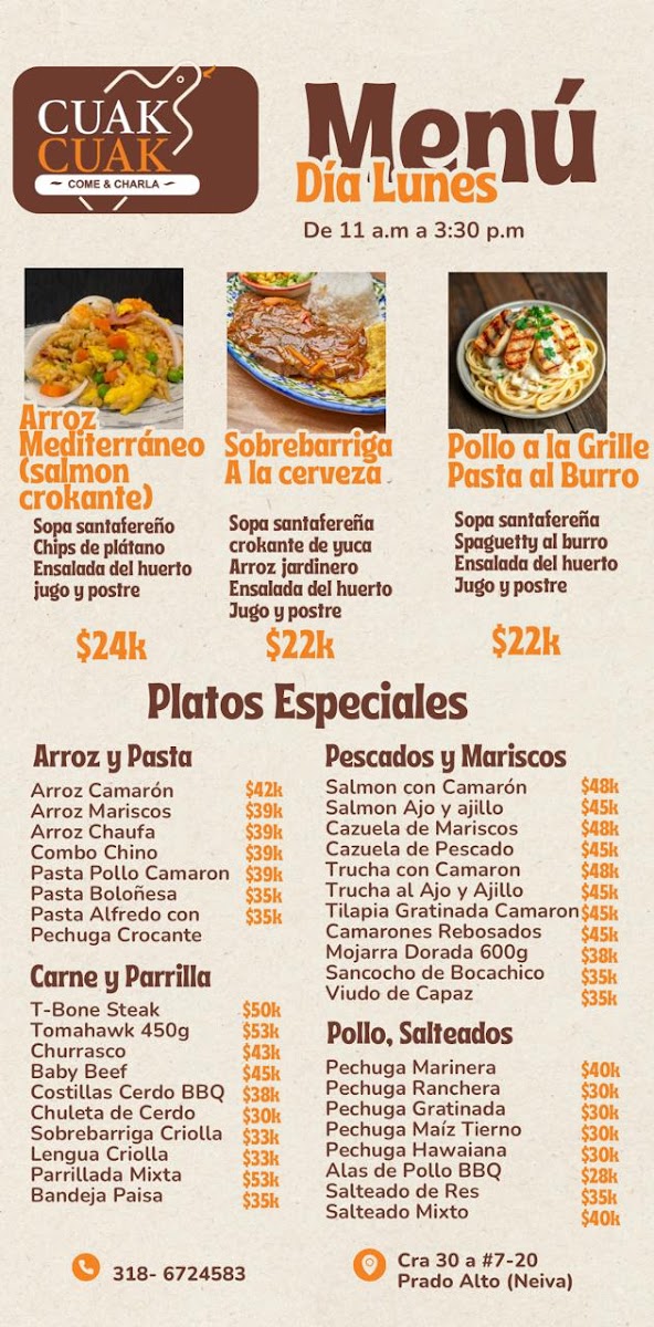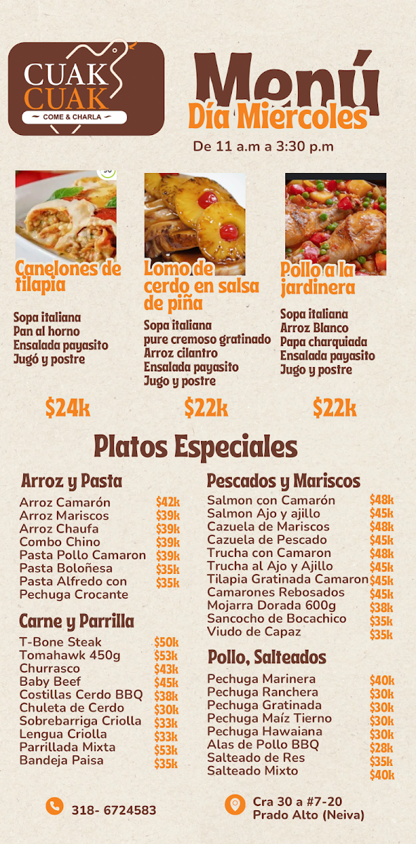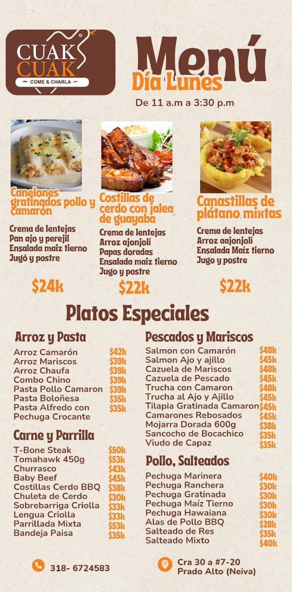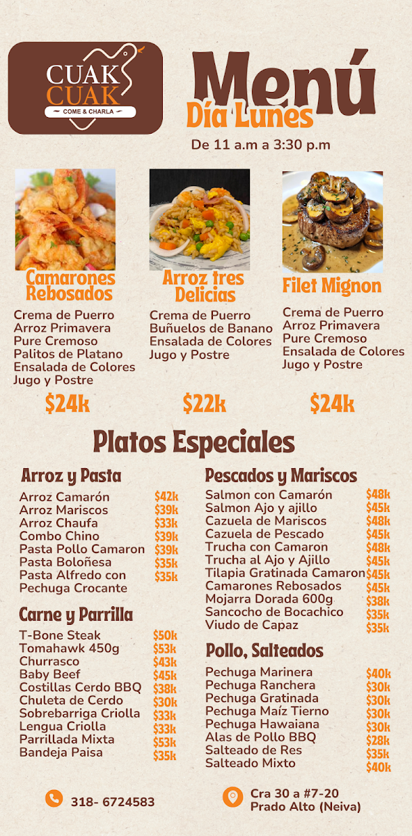Overall, Restaurante Cuak Cuak presents a diverse menu filled with bold flavors and comforting classics that make it a great choice for anyone seeking an authentic Colombian dining experience.